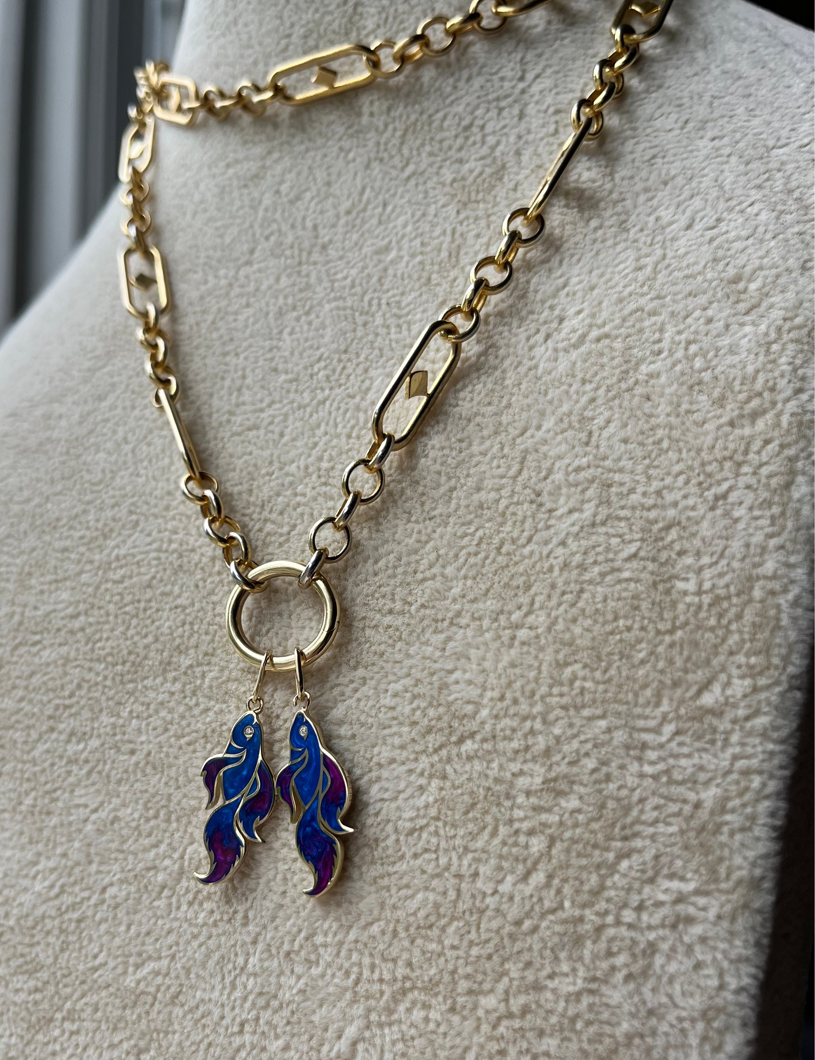 We only use 18k solid gold with ethically sourced diamonds and gemstones and enamel.